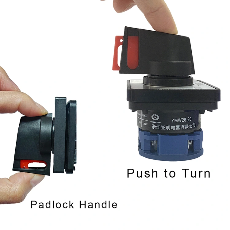 In qualità di produttore di interruttori elettrici professionali con oltre 30 anni di esperienza, YAMING lancia l'interruttore a camma rotante con controllo a spinta con lucchetto da 20 A (modello interno: YMW26-20NS), un capolavoro che integra decenni di esperienza nella produzione e innovazione tecnologica. Questo prodotto è progettato per migliorare il controllo di sicurezza e prevenire malfunzionamenti, adatto per circuiti CA 50 Hz, max 690 V e CC 240 V, supportando corrente nominale fino a 20 A.