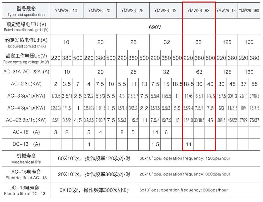 L'interruttore di isolamento di disconnessione OFF-ON con lucchetto YAMING 63A ha un'eccellente adattabilità ambientale e funziona stabilmente in condizioni di lavoro normali. I parametri tecnici specifici sono i seguenti: