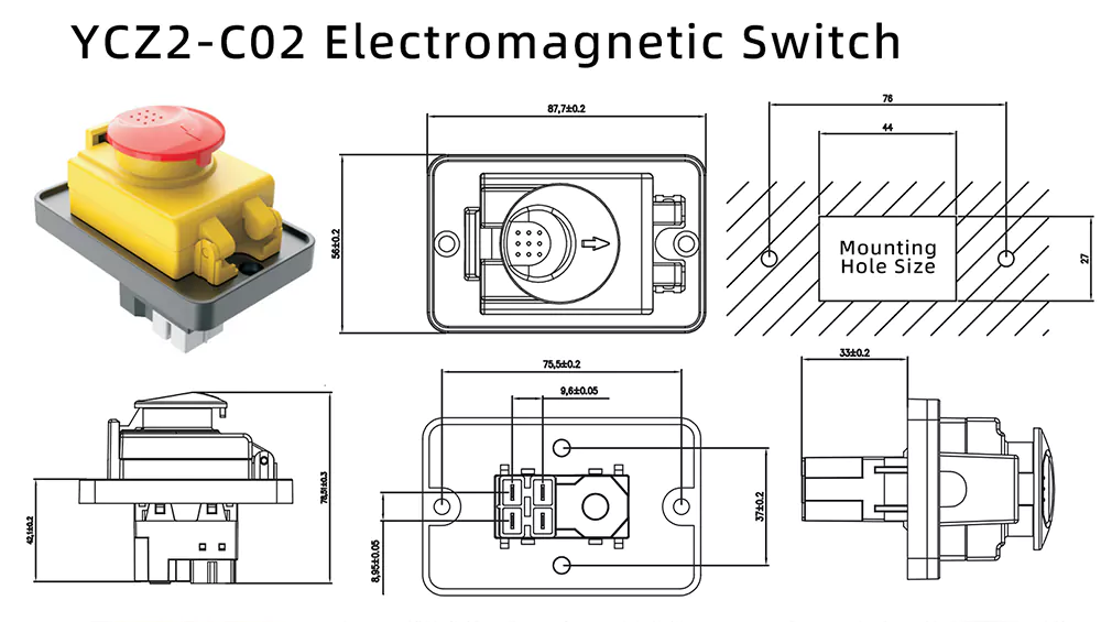 Sviluppato per adattarsi ad ambienti di controllo industriale complessi, il modello YCZ2-C02 (interruttore elettromagnetico a pulsante con coperchio di arresto di emergenza a pannello grande da 8 A) adotta un design integrato di protezione da interruzione di corrente e sottotensione, che può eliminare in modo efficiente il rischio di guasti improvvisi delle apparecchiature.